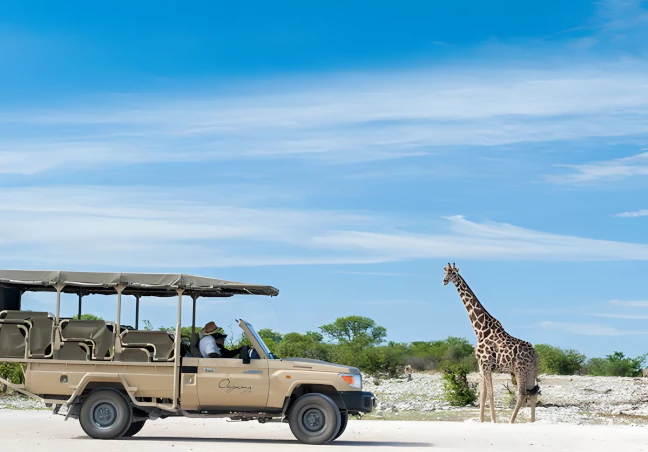 Sleep under the stars and wake up to roaring lions in Etosha! Thrilling game drives and untamed adventure.